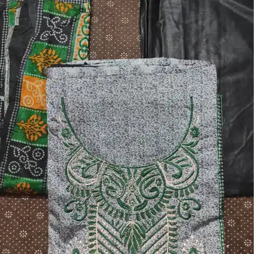 Product Type: Unstitched Three Piece. Color: As seen as picture. Main Material: Cotton. Kameez- cotton. Salwar-Cotton. Orna-cotton. Designed according to latest patterns. Easy to wash and color guaranty. Perfect fitting