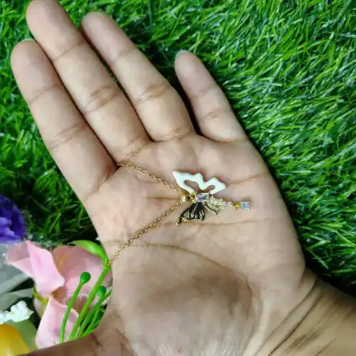 এই গলার Locket নকশা প্রজাপতির মতো। প্রজাপতি বিশ্বস্ততার প্রতীক, কারণ এদের জীবনে একজনই সঙ্গী থাকে এবং এটি সুখেরও প্রতীক। তাই, প্রজাপতি নেকলেস আপনার ভালোবাসার মানুষদের কাছে ভালোবাসা প্রকাশের জন্য একটি চমৎকার পছন্দ। এই প্রজাপতি নেকলেসটি অ্যালয় এবং অ্যাক্রিলিক দিয়ে তৈরি, যা নিকেল ও সীসা মুক্ত এবং পরতে আরামদায়ক।