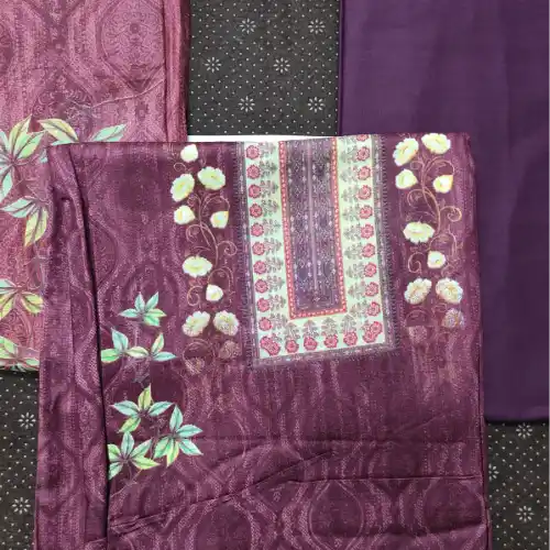 Product Type: Unstitched Three Piece. Color: As seen as picture. Main Material: Cotton. Kameez- cotton. Salwar-Cotton. Orna-cotton. Designed according to latest patterns. Easy to wash and color guaranty. Perfect fitting
