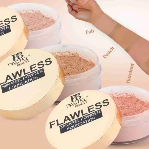 Buildable, natural coverage with a matte finish. Absorbs excess oil and controls shine. Suitable for all skin types, including sensitive skin. Lightweight and breathable formula. Achieve a perfectly even, soft, and long-lasting finish with Pastel Beauty Flawless Mineral Powder Foundation your ideal solution for a naturally radiant complexion.