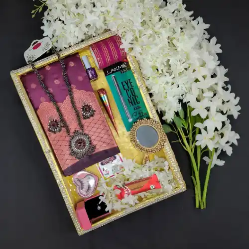 প্রিমিয়াম সিল্ক কাতান শাড়ি💍 ম্যাচিং গলার হার, কানের দুল ও চুড়ি💅 ম্যাচিং নেইল পলিশ, ও চাঁদ টিপ💍 ফিঙ্গার রিং উইথ বক্স , উডেন আয়না, কাজল ও মেহেদি👁️ আইল্যাশ, গাজরা🍫 কিটক্যাট চকলেট🎁 জন্মদিন, এনিভার্সারি কিংবা যেকোনো বিশেষ দিনে প্রিয়জনের জন্য সারপ্রাইস হিসেবে👗এই এক সেটেই থাকুক আপনার সাধ্যের মধ্যে সবটুকু।👉 এখনই অর্ডার করুন, আর প্রিয়জনকে দিন হাসি আর ভালোবাসায় ভরা এক অনন্য উপহার