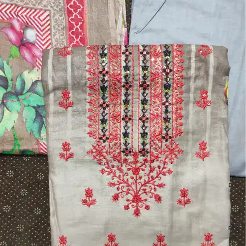 Kameez: 2.5 goj (Arai Haat Bahar) long 45. orna: 5 hat tat ar orna. Pajama: 2 goj (two and a half hands) Product Type:Salwar,Kameez orna. Gender: Women. Main Material: Cotton. Product same as picture.