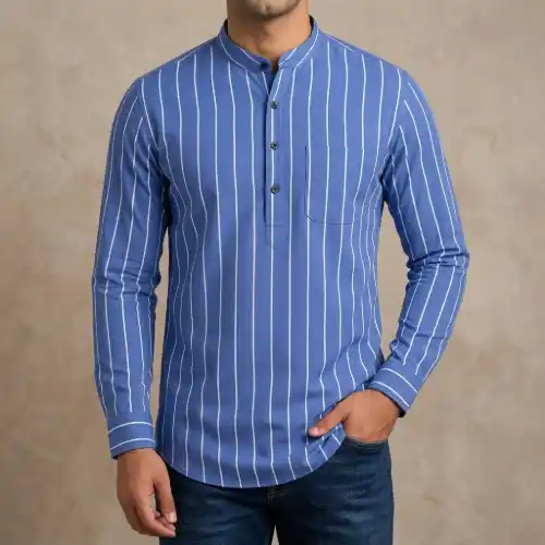 পোশাকের ধরণ: প্রিমিয়াম কোয়ালিটি কটন কাতুয়া (Katua/Kurta style shirt)। ডিজাইন: গাঢ় সবুজ (Deep Green) রঙের ওপর সাদা নিখুঁত স্ট্রাইপ। ফিটিং: বাবা এবং ছেলে উভয়ের জন্যই আরামদায়ক ক্যাজুয়াল ফিটিং। বিশেষত্ব: মন্দারিন কলার (Mandarin collar) এবং ফোল্ডিং স্লিভ স্টাইল। বাচ্চাদের কাটুয়া সাইজ - ৪ থেকে ১২ বছর